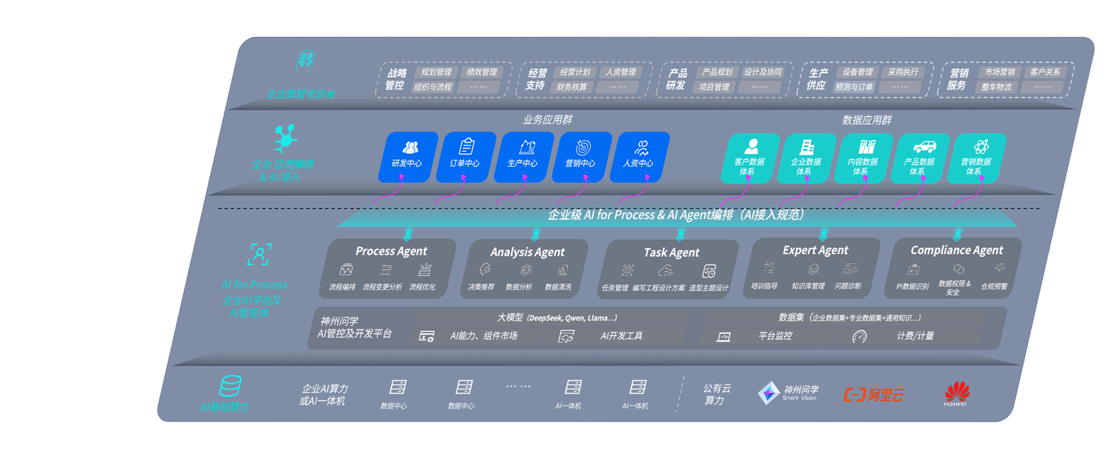 新宝会问学智车解决方案是一套基于AI技术的汽车行业智能化系统,,覆盖从底层算力到顶层AI应用的全栈方案。。。方案由算力层、、、、模型层和应用层组成:算力层,,,,方案支持多种一体机配置,,,,具备云端灵活部署、、、、多云适配以及动态优化计算资源的能力;模型层,,新宝会问学平台版提供了企业级AI应用一站式构建与管理平台,,,,支持基于后训练强化技术的汽车企业专属模型的训练、、、评测和运营;应用层,,新宝会问学DeepSeek版提供包括超级员工、、智能招采、、、智能营销、、、、智能客服、、、、AI for BI等一系列解决方案,,可助力汽车行业实现数字化转型,,让管理更智能、、、、响应更敏捷。。。。
